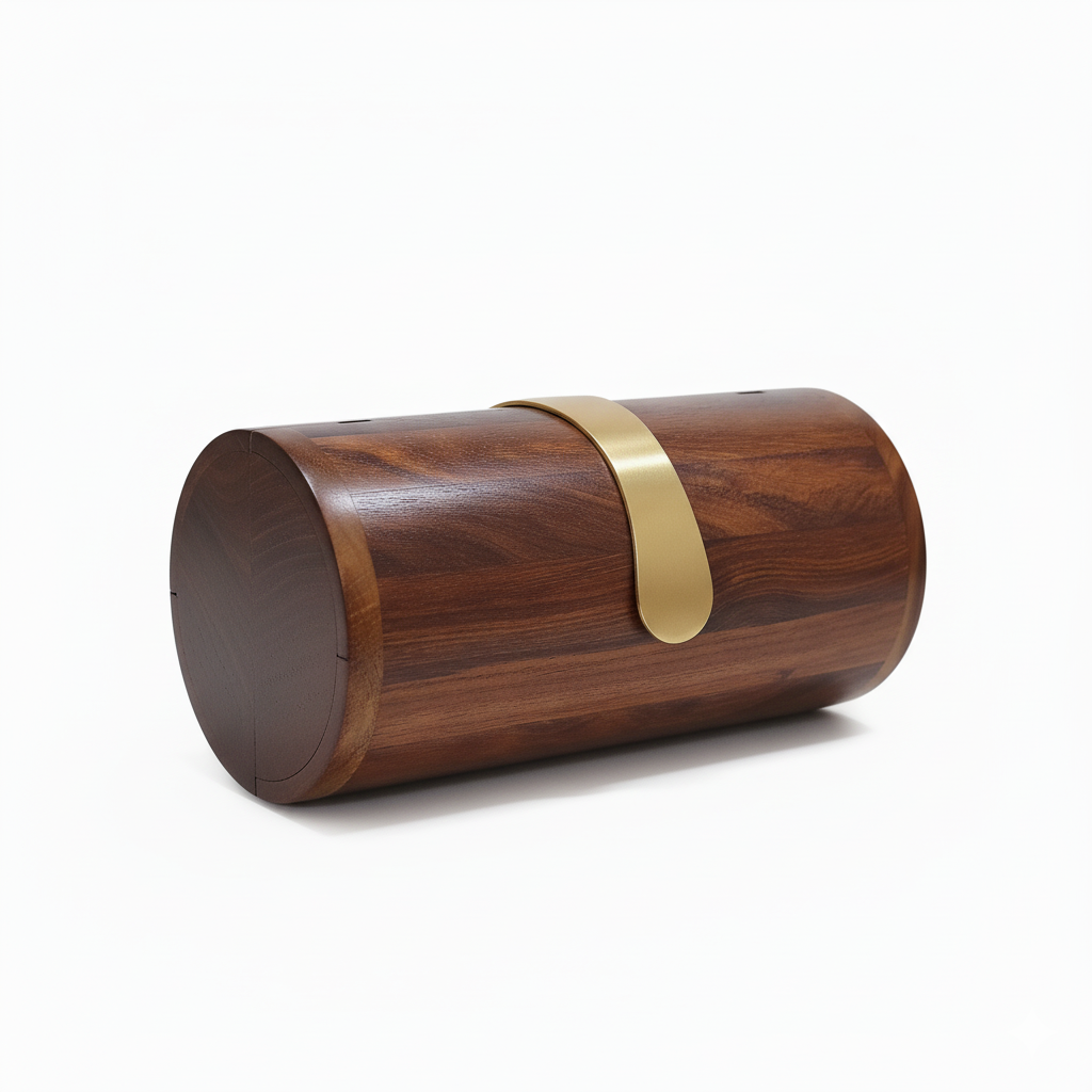 Cylindrical Wooden Clutch | Brass Latch